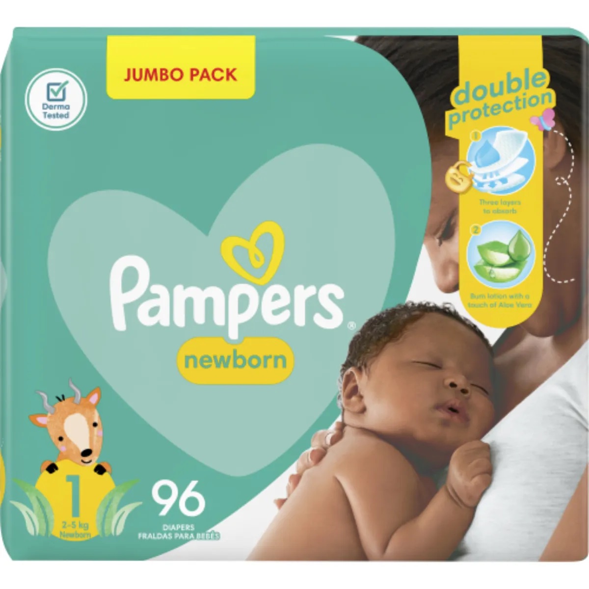 Pampers active baby-dry new born jumbo pack 96 nappies are just what your newborn needs to stay sound asleep through the night, and move around comfortably during the day. The combination of absorbent micro-pearls, an extra dry-layer, and air channels mean moisture is wicked away from their skin and locked away for up to 12 hours, leaving their bottoms dry and comfy.